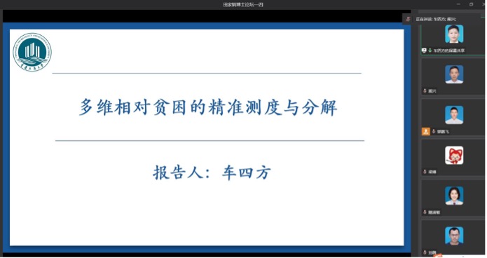 太阳集团tyc122cc青年教师车四方副教授做了《多维相对贫困的精准测度与分析》的学术报告。车四方副教授认为缓解相对贫困是实现共同富裕的基本前提,基于此车四方老师构建了包含心理健康、环境质量等维度的多维相对贫困指标体系,借鉴A-F贫困框架体系,利用中国家庭追踪调查(CFPS)数据,引入机器学习中的随机权神经网络(NNRW)方法,精准测度并分解了中国城乡间、区域间居民的多维相对贫困广度、深度和强度水平。最后车四方老师强调,无论是城乡间还是区域间,随着相对贫困维度的增加,多维相对贫困的广度、深度和强度指数呈下降趋势,表明发生极端多维相对贫困的居民逐渐递减。