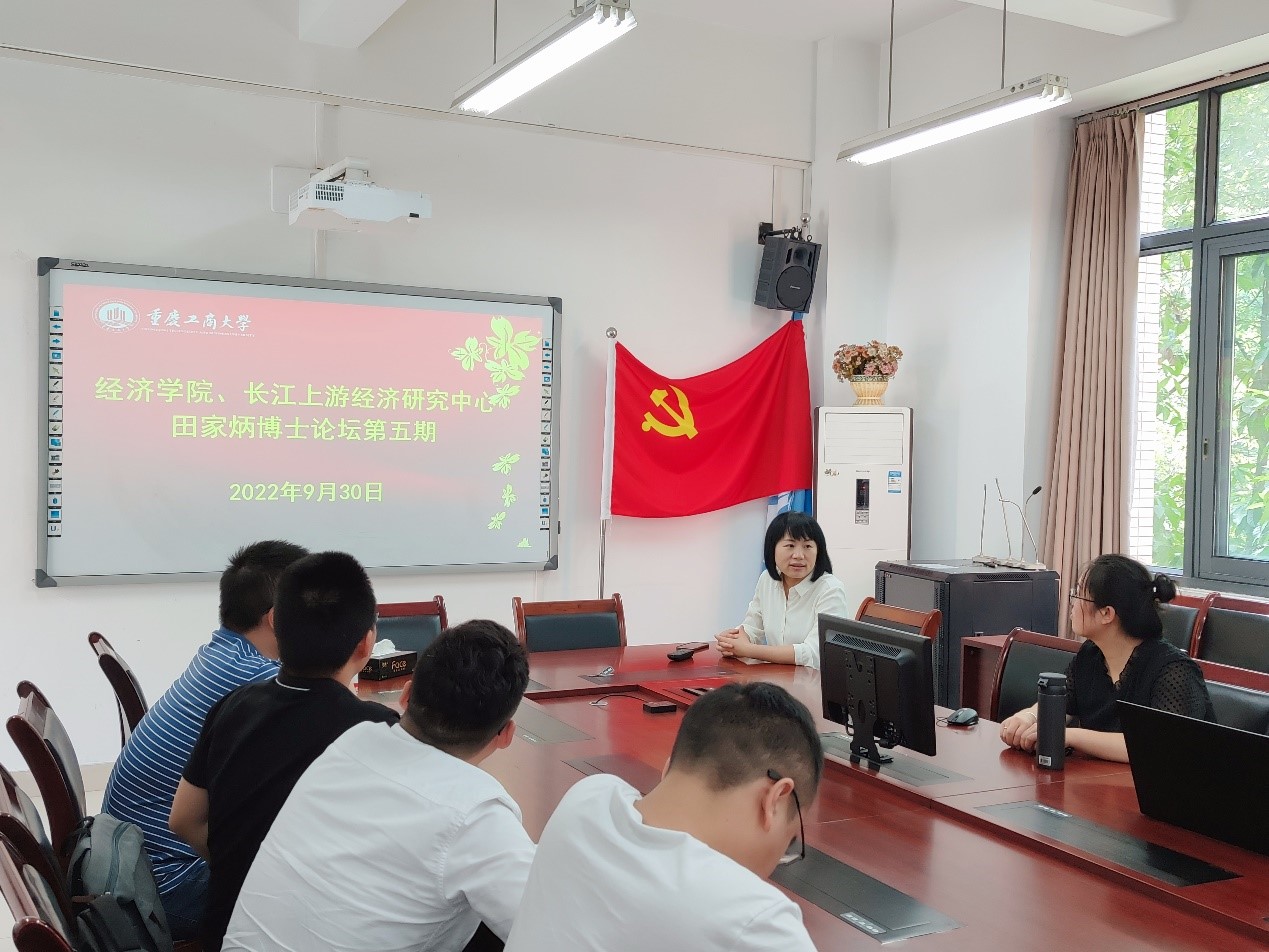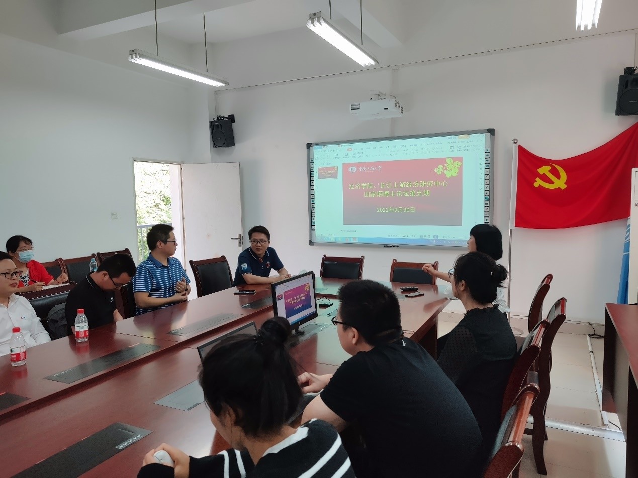 2022年9月30日上午,太阳集团tyc122cc、长江上游经济研究中心于田家炳404会议室举办了第五次“田家炳博士论坛”,太阳集团tyc122cc副书记副院长宋瑛教授、副院长黄潇教授、青年博士教师和长江上游经济研究中心的博士研究生参加了本次论坛。青年教师王建业博士、雷俐博士分别进行了汇报发言。