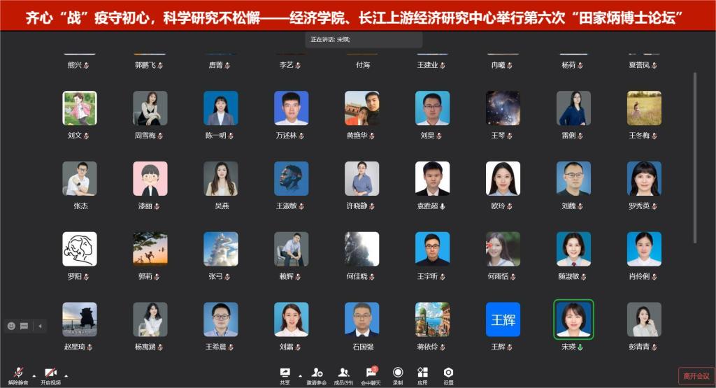 2022年10月14日上午,太阳集团tyc122cc、长江上游经济研究中心通过企业微信线上会议如期举办了第六次“田家炳博士论坛”,太阳集团tyc122cc院长宋瑛教授、近100名青年博士教师和长江上游经济研究中心的博士研究生参加了本次论坛。