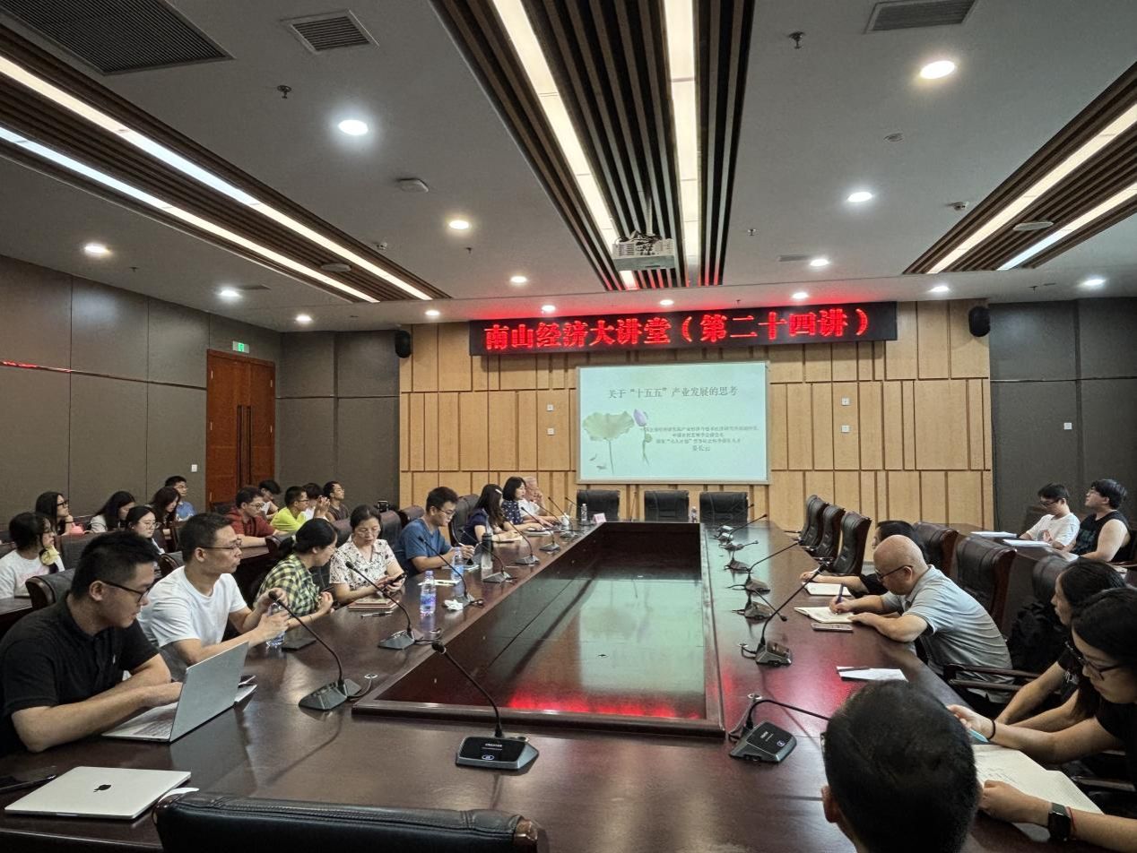 9月15日下午,南山经济大讲堂第二十四讲在新图书馆会议中心第五会议室举行。中国宏观经济研究院产业经济与技术经济研究所原副所长姜长云教授带来了“关于‘十五五’中国产业发展的思考”主题讲座。本次讲座由太阳集团tyc122cc院长宋瑛主持,太阳集团tyc122cc、成渝地区双城经济圈建设研究院部分师生参加了此次讲座。