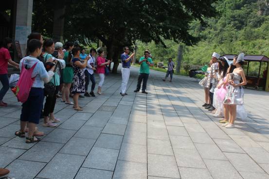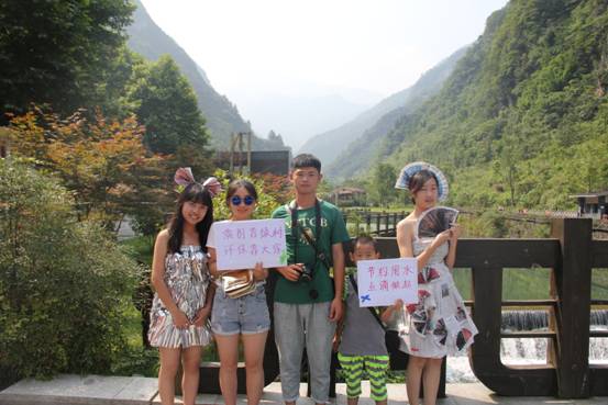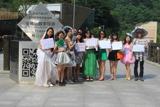 T台秀之后,身着时装的“模特”向游客讲解了此次活动的意义,号召大家共同关注景区环境,共筑环保金佛山。游客随之纷纷加入到我们的活动中,他们手持倡导环保、爱护景区环境的标牌和“模特”合影,有的游客也将照片分享到朋友圈、微博呼吁身边的朋友一起加入环保行列,共同为环保助力,为建设美丽中国发声!