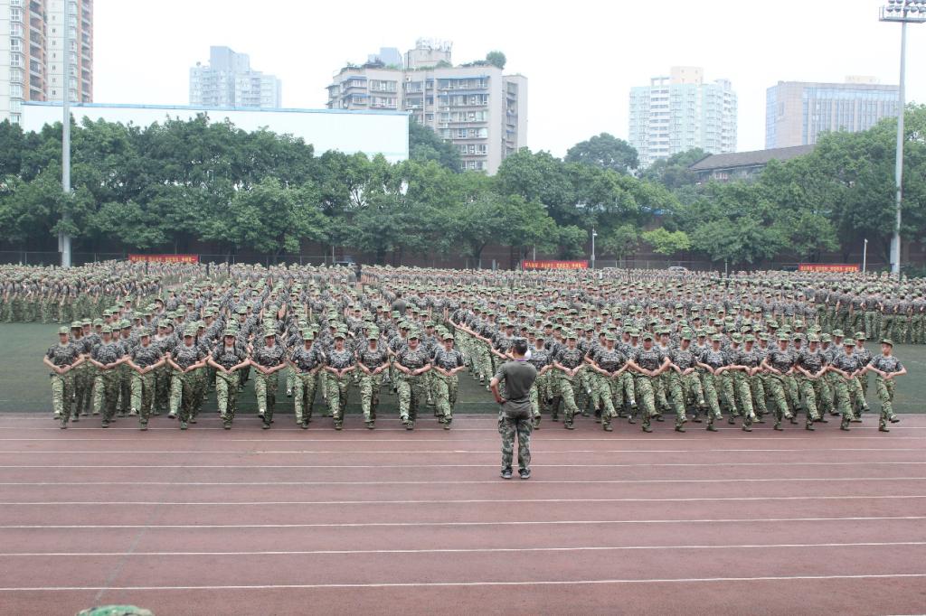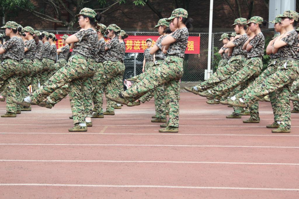 烈日当头,全团鸦雀无声,只剩下教官们来回的踱步声。同学们笔直地站在日头下,双手贴紧身侧,像一株株渴望向上的小树。时间一分一秒的流逝,同学们在热浪中依然坚挺,像是一种对自然无声的抗议,也好似是一种对自身惰性的宣战。随着总教官的一声哨响,军姿环节结束,同学们整理身姿,继续投入到下一个军训环节中去……