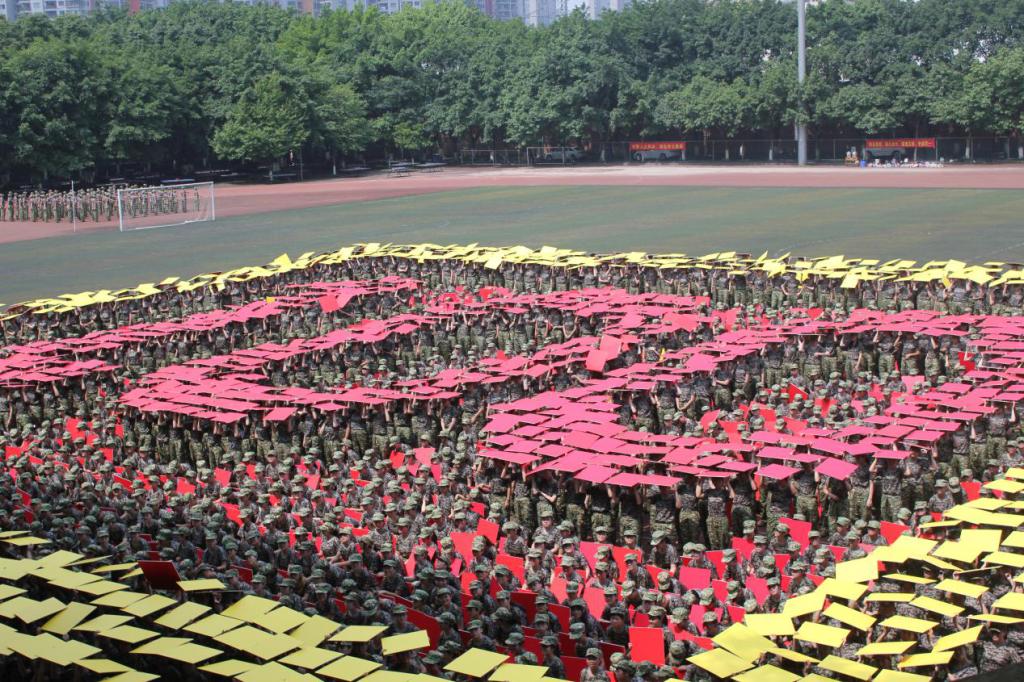 “听吧新征程号角吹响,强军目标召唤在前方!”浑厚铿锵的《强军战歌》在南操场的四周此起彼伏,一句接一句,一浪过一浪,同学们跟唱,争唱的活跃气氛颇有当年抗击外敌,保家卫国先辈们的几分气势,给热气沉闷的夏日增添了几分乐趣。
