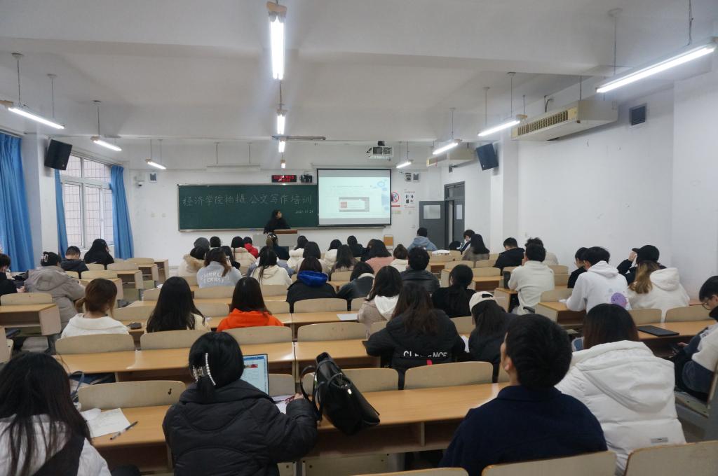 为推进学院工作的有序进行,提升各部门学生干部的摄影和公文写作能力,更好地展现学院风貌,太阳集团tyc122cc于11月21日上午9点到11点在博智楼07112开展了学生干部摄影、公文写作培训会。参与本次培训会的有太阳集团tyc122cc分团委学生会暨新媒体工作室、经济青队、太阳集团tyc122cc党员服务站和学院各社团的部门成员。本次培训会由马嘉馨同学主持,由重庆工商大学新闻中心的周建宇同学和19税收一班的但程程同学分别进行摄影和公文知识的培训。