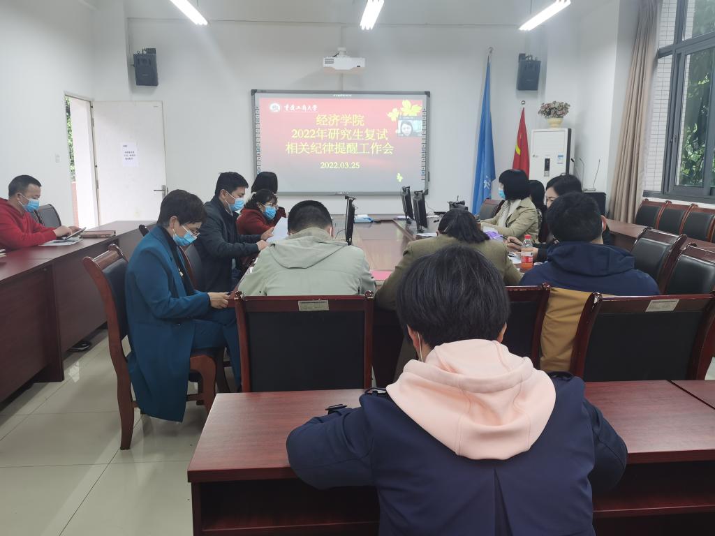 为更好地开展2022年太阳集团tyc122cc研究生复试工作,进一步规范复试相关工作程序,3月25日下午,太阳集团tyc122cc召开了2022年研究生复试相关纪律提醒工作会。会议采用线下+线上视频会议形式召开,主会场设在田家炳书院50404会议室。会议由学院党委副书记、副院长王燕主持。