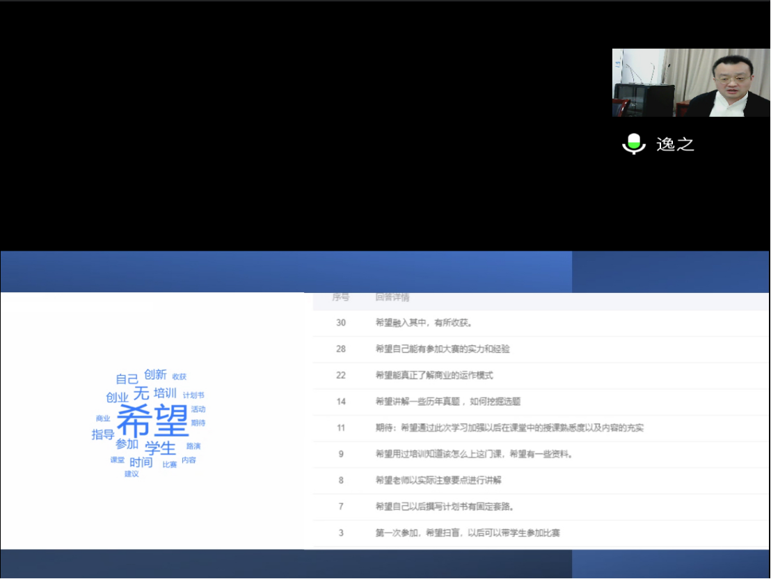 为锤炼“大众创业、万众创新”的新生力量,进一步指导学生领会“互联网+”创新创业大赛比赛精神,4月17日18点,太阳集团tyc122cc特邀重庆市教委“优创优帮”大学生创业扶持计划创业导师钟声在田家炳404会议室为学院参赛学生开展了第八届中国国际“互联网+”大学生创新创业大赛专题培训讲座。本次讲座由太阳集团tyc122cc尹元福副院长主持,2020级和2019级100余名学生参加,讲座采取线上线下结合的方式进行。
