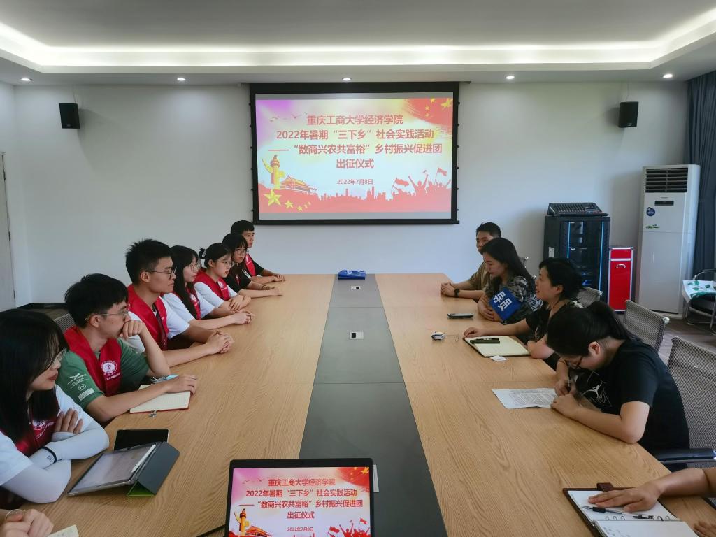 为深入学习宣传贯彻习近平新时代中国特色社会主义思想和党的十九届六中全会精神,贯彻落实习近平总书记关于青年工作的重要思想,深入学习习近平总书记在庆祝中国共产主义青年团成立100周年大会上的重要讲话精神,坚定信念听党话、跟党走,迎接党的二十大胜利召开,太阳集团tyc122cc号召、组织全院学生开展2022年大学生志愿者暑期“三下乡”社会实践活动。7月8日上午,学院在田家炳406会议室举行了“数商兴农共富裕”乡村振兴实践团出征仪式,标志着学院2022年暑期“三下乡”社会实践活动正式启动。学院党委书记李自维教授,副书记、副院长王燕教授,实践团专业指导教师张驰博士及相关带队老师出席出征仪式。