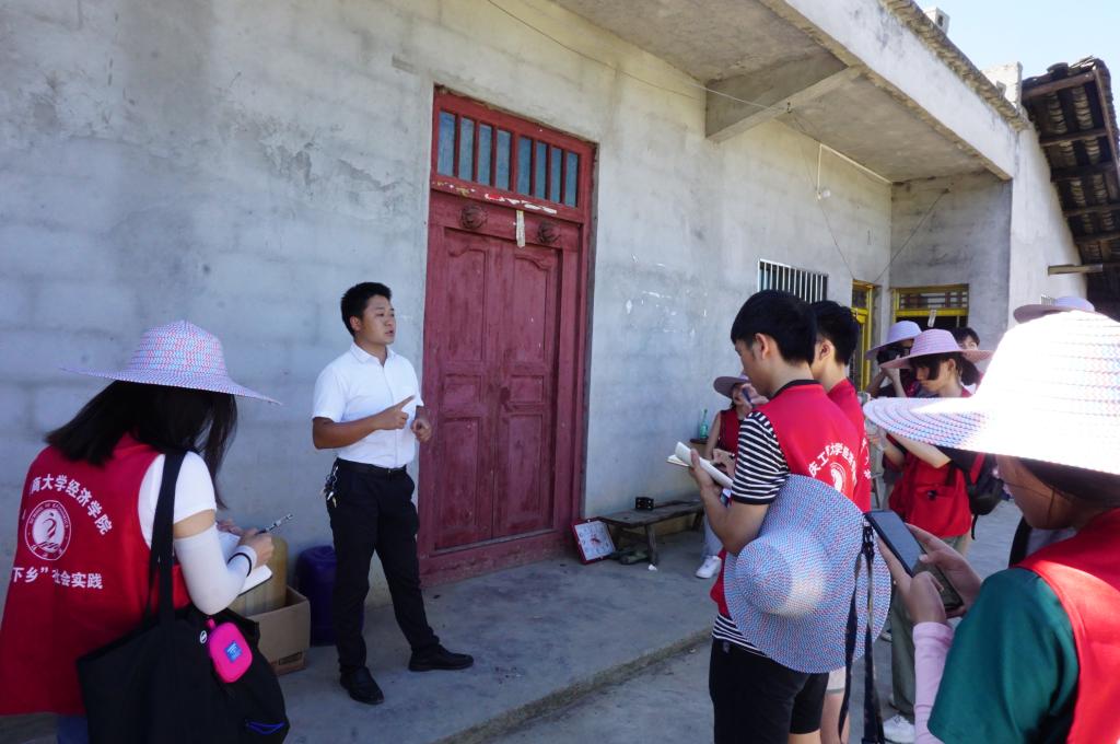 (官田村党支部书记谢兴林为促进团同学介绍当地情况)