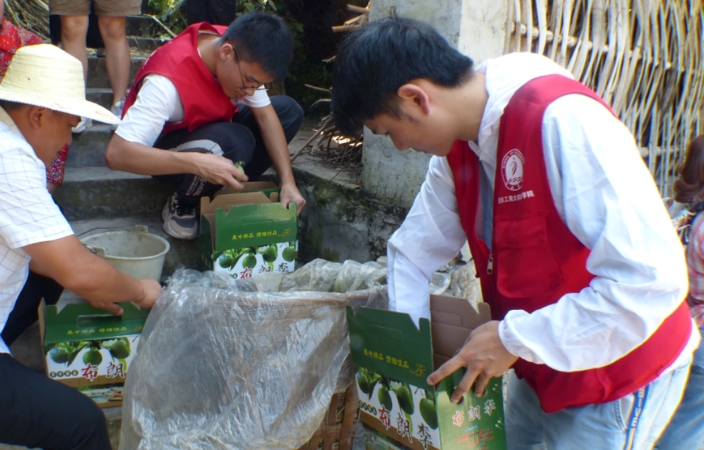 (促进团成员帮助村民打包商品准备邮寄给买家)