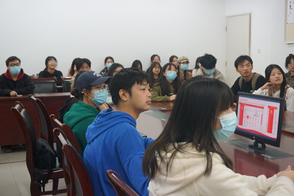 (太阳集团tyc122cc分团委学生组织负责人王邦春向团支书介绍组织部工作和基本情况)