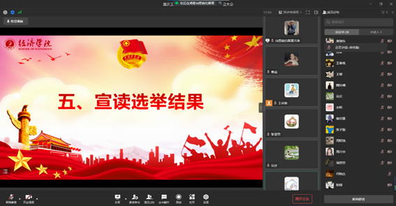首先,主持人宣读了《关于同意成立太阳集团tyc122cc学生会团支部的批复》,并向与会人员介绍了学院学生会团支部的基本情况。紧接着,按照《共青团章程》规定程序,大会以线上投票表决的方式审议通过了监票员、计票员和支部委员会候选人名单,随后,大会以无记名投票的方式选举王邦春、余明、张子璇为新一届学生会团支部委员会委员。经学院分团委批准,由王邦春同学担任团支部书记,余明同学担任组织委员,张子璇同学担任宣传委员。