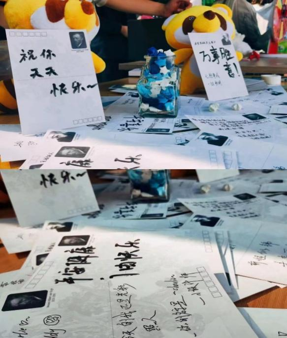 进一步前进。社团同时在现场放置“烦恼罐子”,参与活动的同学们本着自愿、兴趣原则,可将近期自己面临的烦恼、抉择等写在星星纸上并在社团成员们的帮助下完成叠星星放入烦恼罐罐,释放压力。在“素纸浓情,麟鸿相寄”给陌生人一句话的活动环节中,同学们有序的排队并在明信片上满怀期待地写下了自己想对陌生人说的话,他们也期待着陌生人的回信给他们带来面对生活中挫折的勇气和追逐梦想的力量,亦或是其他惊喜。最后,参与此次活动的同学参加了社团举办抽奖活动,获得了精美小礼品。