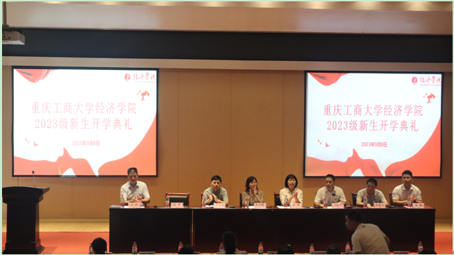 研究生代表周雨晴学姐与新生分享了大学学习生活经验,为全体新生的校园生活提供了新的方向和启迪;经济学实验班黎璐同学发言表示:2023级新同学们将以挑战极限的勇气,不畏艰辛的刚毅,谦而不卑的心态去迎接远航路上的无限可能。