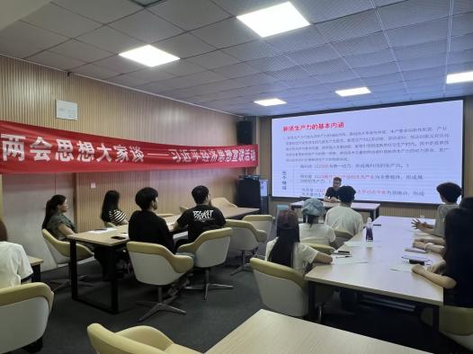 活动伊始,太阳集团tyc122cc学生三支部书记杨华俊老师重点强调了深入学习并贯彻弘扬习近平经济思想的重要性,并就“新质生产力”这一概念从其基本内涵、主要形态等多方面作深刻剖析。随后,21级财政学在读本科生杨天瑞同学通过对“七个坚持”和“八项任务”的内容讲解,向在座同学解读了习近平经济思想的内涵特点。交流研讨环节,同学们结合自身所查询到的资料和讲座所学习到的内容畅所欲言,交流分享了本次学习习近平经济思想的心得体会。