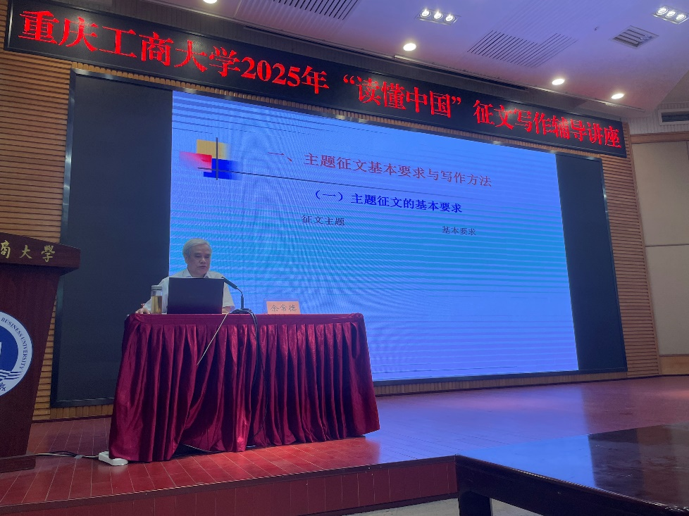 随后,校关工委理论研究中心主任余常德教授担任主讲。余教授从征文主题解析、写作技巧、案例分析等方面展开辅导。他结合丰富的历史与现实案例,深入浅出地讲解如何围绕“弘扬时代精神,建设教育强国”主题挖掘素材、提炼观点,鼓励同学们立足专业特色,以小见大,展现新时代青年对教育强国建设的思考与行动。同时,他还针对文章结构搭建、语言表达优化等写作要点进行详细指导,干货满满,令在场学生受益匪浅。