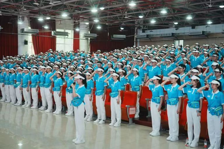 志愿者上岗动员大会在激情昂扬的国歌声中拉开序幕,西南大学有关领导致辞,市商务委领导向志愿者代表授旗。490名西洽会“蓝精灵”志愿者共同进行了庄重的集体宣誓。西洽会中,他们将秉持“服从指令、服务大局、扎根岗位、追求卓越”的理念,以青春之姿、奋斗之态,积极为西洽会的顺利开展贡献力量。
