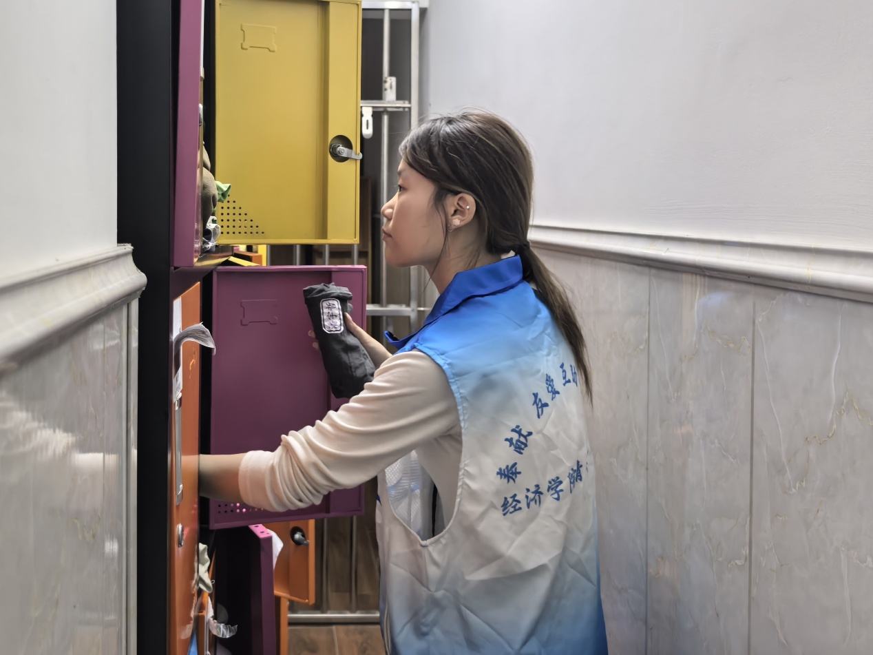 志愿者们分成两组开展活动。在洗衣楼区域,志愿者在工作人员引导下,分别将晾干的衣服取下、整齐折叠并分类放进相应儿童的柜子,为他们营造出一个整洁有序的衣物存放环境。生活区小组,则协助整理儿童日常用品,同时通过绘画互动与孩子们建立情感连接,为他们传递一份细致入微的爱意。
