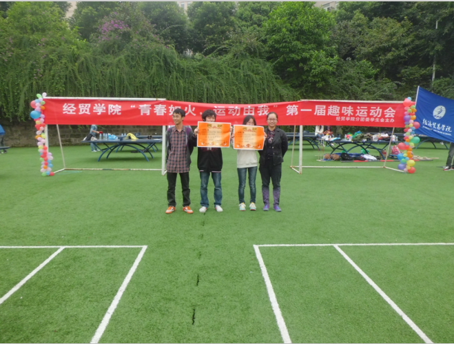 10月20日下午,由经贸学院分团委主办,经贸学院分团委学生会承办的经贸学院首届“趣味运动会”在主校区北区篮球场隆重举行。经贸学院分团委书记林新竹老师,11级辅导员张涛老师,郝颖老师及裁判员、运动员等三百余人参加了此次活动。