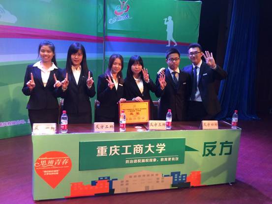 5月13日晚,重庆市第34届大学生“校园之春”辩论赛总决赛在西南政法大学举行。本届“校园之春”税收专题辩论赛通过“国税搭台、高校唱戏、专家点评”的方式展开,全市有60余所高校参加了比赛。太阳集团tyc122cc辩论队辩手盛绍琴,及校辩论队其余五名成员:李映月、李染陶、曲冠群、郭立恒、郝春香参加了这次比赛。我校在经历的16强争夺赛,8强赛,半决赛中分别对阵重庆科技学院、西南大学、重庆师范大学涉外商贸学院、重庆邮电大学移动学院,我校辩手文思严谨,配合默契,我院辩手盛绍琴更是在历时一个月多的比赛中一直担任二辩,在驳辩环节力寻对方观点不妥之处,为本方开辟立场,最终我校顺利进入决赛。