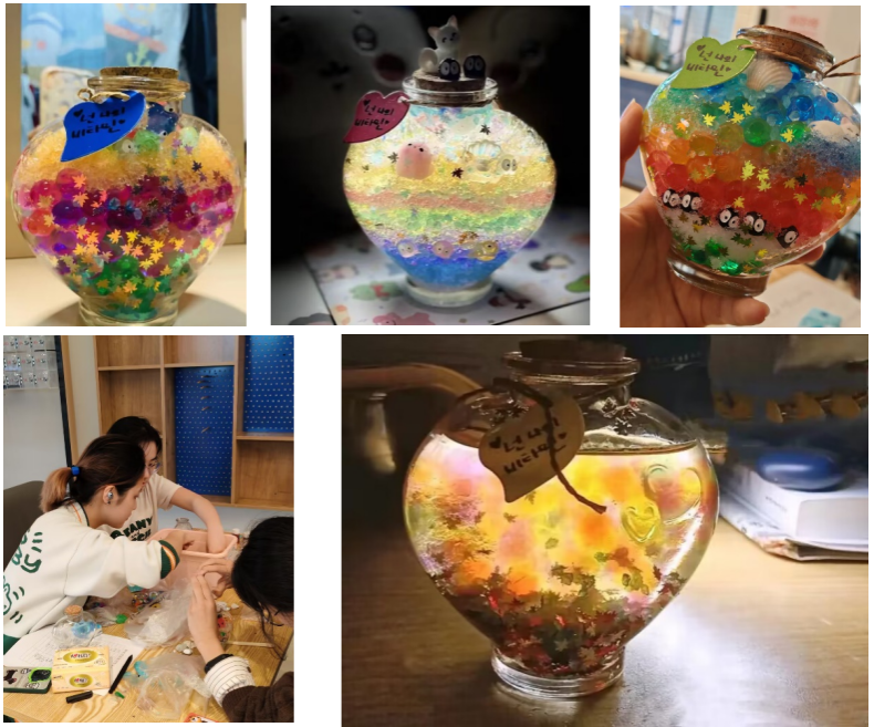 本次DIY漂流瓶活动不仅为同学们提供了一个展示创意和情感的平台,更促进了学院同学之间的沟通和交流。通过制作和设计漂流瓶,同学们可以更加深入地了解创新思维,也更加激发自我的获得感、满足感和幸福感,这是活动给同学们带来的意义非凡的成就,也是突破自己创意局限的最佳方式之一!