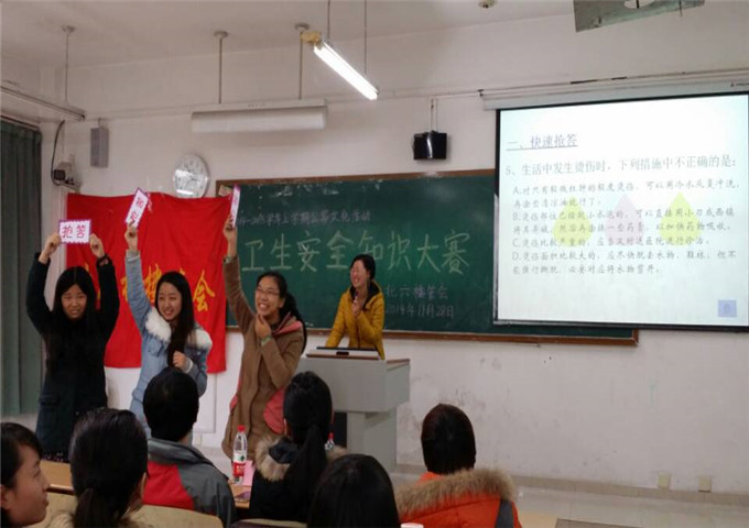 公寓安全一直是学校老生常谈的主题,更是楼栋工作的重中之重,而生活卫生常识是健康生活的保证。为了提高同学们公寓安全意识,增强同学们对生活卫生知识的了解,创建安全和谐的北六公寓环境,北六楼管会于2014年11月28日下午4点成功举行“北六公寓安全卫生知识竞赛活动”。到场的嘉宾有太阳集团tyc122cc党总支雷菁副书记、公寓管理科科长冯湛老师、北六楼栋管理主任郝颖老师、北六宿管阿姨冯祖惠、大自委公寓公寓社区中心宣传策划部的2位干部。