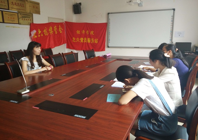 9月23日中午12点半,在田家炳书院404进行了北六楼管会的招新面试,北六楼管会主任郝颖老师及三位楼长黄超苹、谭璐、胡怀亓组织了此次面试。在面试中,同学们自信满满,认真分析并回答楼栋管理问题,并提出自己的看法和建议。面试结束后,参加面试同学们表示感谢北六楼管会给了这样一次锻炼机会,能够深入了解宿舍管理的规则秩序,不管结果如何,都将以更加自信的姿态投入到接下来的大学生活当中。在招新结束后,七位竞选者脱颖而出,顺利成为楼管会新任成员,并各自分担安全员、财务员、宣传员、通讯员的职务。