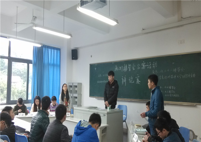 你问我答,唇枪舌战,硝烟弥漫。北六栋于2014年12月1日中午12点50在田家炳308教室与北二十一栋以辩论的形式开展联谊活动,旨在增进太阳集团tyc122cc男生与女生之间的沟通,以及两楼栋楼管会之间的交流,为以后的工作及活动举行上的合作打下基础。参加此次活动的有两楼栋的楼管会干部及公寓区学生,大家在前期的精心准备之下开始了口才上的较量。