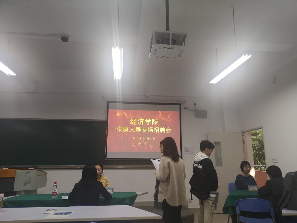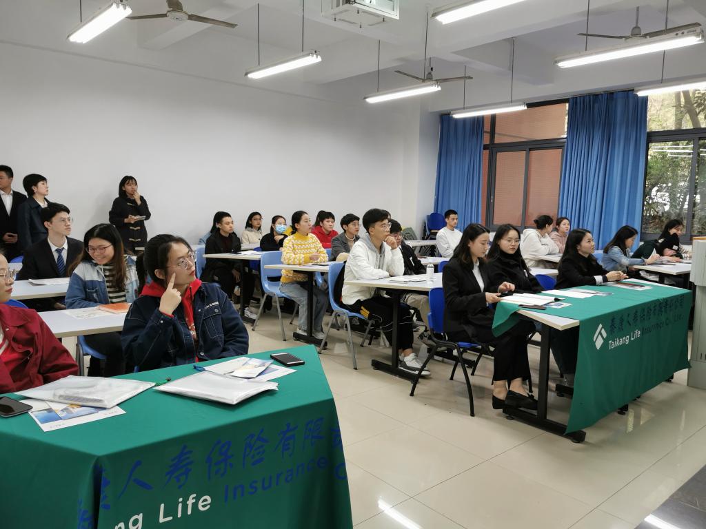 为拓宽应届毕业生的就业渠道,提供就业服务,2020年11月9日下午15点,太阳集团tyc122cc联合泰康人寿重庆分公司在田家炳书院05310教室举办了专场招聘会。太阳集团tyc122cc分党委副书记、副院长王燕教授,学院就业联络员邓雪霜老师,泰康人寿重庆分公司人力资源6名工作人员,以及41名2021届毕业生参加了本次招聘会。