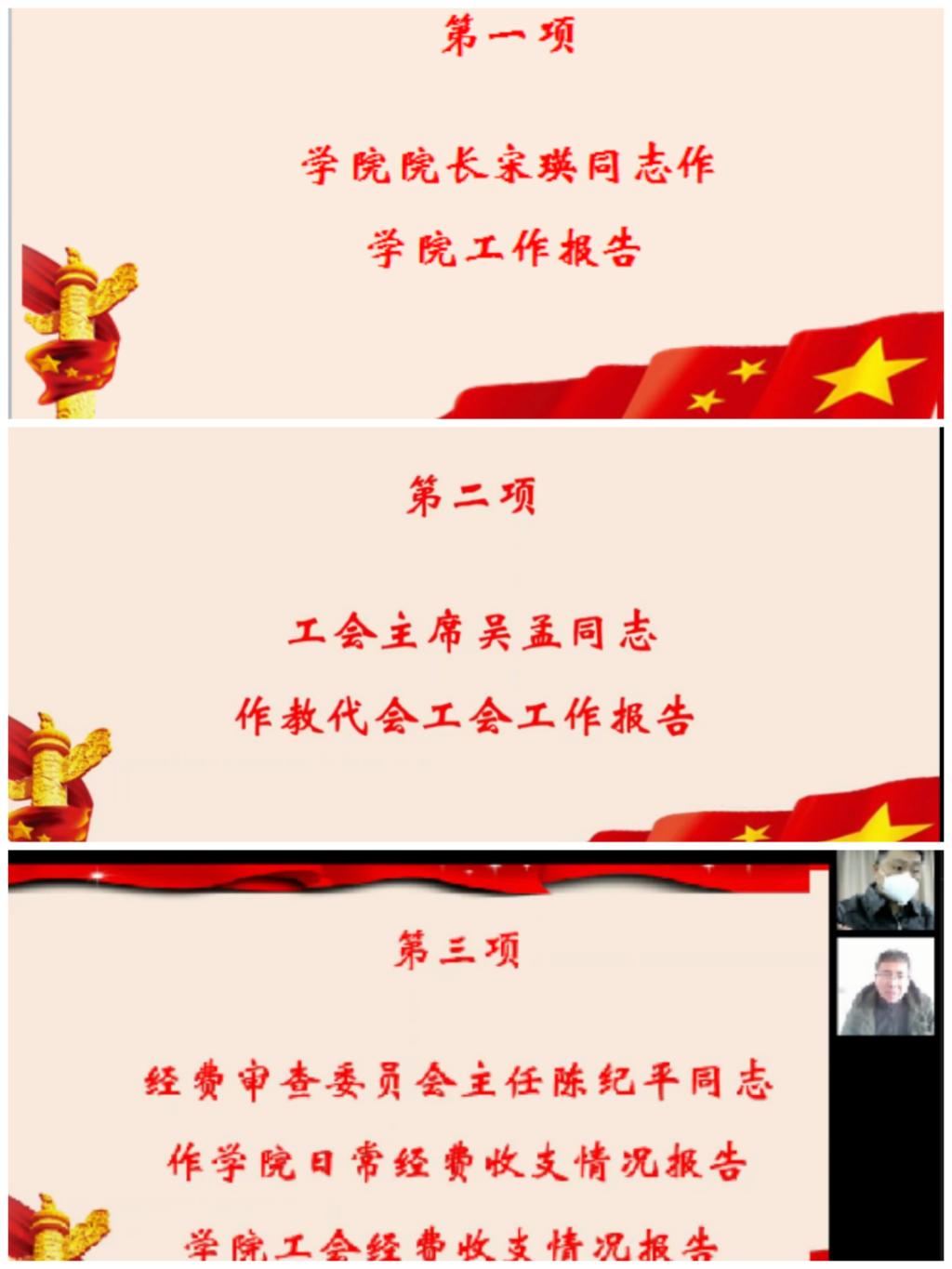 接着,学院工会主席吴孟老师作了“太阳集团tyc122cc2022年教代会工会工作总结报告”,学院教代会经费审查委员会主任陈纪平教授作了“太阳集团tyc122cc2022年日常经费收支情况报告”和“太阳集团tyc122cc2022年工会经费收支情况报告”。
