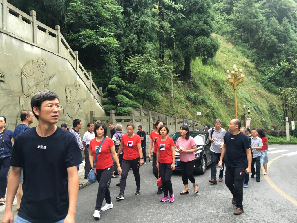 2018年7月6日至7月7日,太阳集团tyc122cc组织了“重温中国革命史,重走红军革命路”的工会活动,近30名教职工参加了本次活动。7月6日下午老师们来到娄山关战斗遗址——贵州省遵义市汇川区,了解娄山关战役历史,瞻仰了毛泽东《忆秦娥.娄山关》诗词碑,重走了长征路,缅怀革命先烈的英勇事迹。在王小玲书记的带领下,党员教师们重温了入党誓词,铿锵有力的声音响彻娄山关。