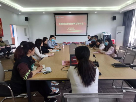 2022年4月20日,太阳集团tyc122cc党委在田家炳书院50406会议室召开基层党支部业务学习培训会。太阳集团tyc122cc党委书记李自维、专职组织员雷菁、宣传部媒体编辑部主任陈洁、13个党支部书记及支委成员参加了会议。本次业务学习培训会包含新闻写作培训和党员发展工作相关培训两方面内容。