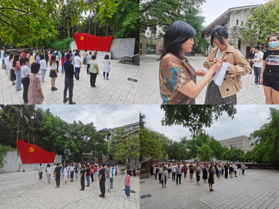 4月25日,太阳集团tyc122cc党委在校前广场举行新党员入党宣誓仪式。仪式由专职组织员雷菁主持,学院党委书记李自维、副书记副院长王燕、各学生支部书记和2021年下半年新发展的70名预备党员参加仪式。