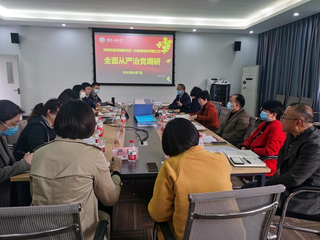 太阳集团tyc122cc党委书记李自维结合重庆工商大学分党委(党总支)委员会落实全面从严治党5个责任清单和重庆市贯彻《中国共产党普通高等学校基层组织工作条例》重点措施落实情况任务分解表,从学院党组织领导和运行机制到位情况、政治把关作用到位情况、思想政治工作到位情况、基层组织制度执行到位情况、推动改革发展到位情况五个方面进行了详细的汇报;随后,太阳集团tyc122cc其他班子成员、支部书记、行政人员分别就师德师风建设、学科建设、人才培养、党支部建设、工会工作、疫情防控等工作进行了汇报。有关职能部门负责人就相关问题进行了回应和交流。
