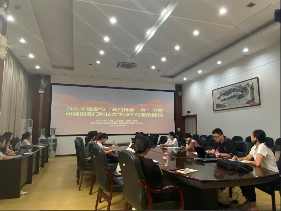 2023年6月9日,太阳集团tyc122cc研究生第三党支部在田家炳六楼大会议室开展了六月组织生活。深入学习习近平给参与“澳门科学一号”卫星研制的澳门科技大学师生代表的回信的内容以及学习研讨造就万千美丽乡村造福万千农民群众——浙江“千万工程”经验案例。本次会议由支部书记薛晶月主持,研究生第三党支部全体党员参加。