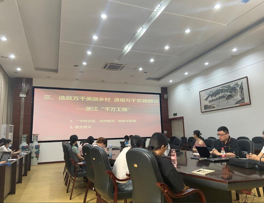 接着,梁博同志带领大家围绕“造就万千美丽乡村造福万千农民群众——浙江‘千万工程’经验案例”进行了学习研讨。从“千村示范、万村整治”由来与发展以及重大意义两个方面向支部党员介绍了浙江“千万工程”这一经验案例。“千村示范、万村整治”工程是习近平总书记在浙江工作时亲自谋划、亲自部署、亲自推动的一项重大决策。20年来,浙江持之以恒实施“千万工程”,探索出一条加强农村人居环境整治、全面推进乡村振兴、建设美丽中国的科学路径。