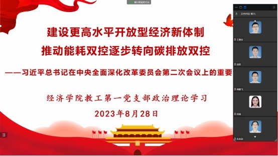 学习活动第一阶段由支部宣传委员熊兴主持,他领学了习近平总书记在中央全面深化改革委员会第二次会议上的重要讲话,带领大家学习了会议关于完善开放型经济新体制的顶层设计、巩固和完善农村基本经营制度、能耗双控逐步转向碳排放双控、开展高等学校和科研院所薪酬制度改革试点等方面的内容。