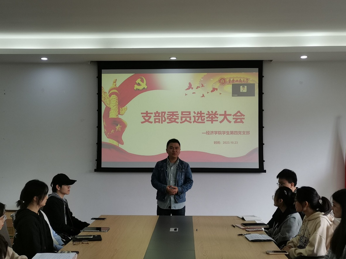 2023年10月23日下午2点,重庆工商大学太阳集团tyc122cc学生第四党支部在田家炳406会议室召开支部委员选举大会,选举产生新一届支部委员会,圆满完成换届。辅导员文理老师以及太阳集团tyc122cc学生第四党支部全体学生党员参加会议。大会由张静娴同志主持。