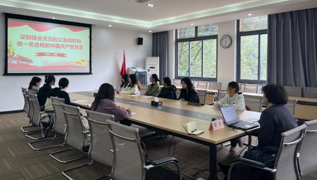 为深入学习贯彻习近平总书记关于主题教育系列重要讲话精神,进一步明确党员的权利与义务,强化师生党员们的责任与担当,11月22日,太阳集团tyc122cc党委委员、正处级专职组织员雷菁同志在田家炳406会议室以“深刻领会党员的义务和权利,做一名合格的中国共产党党员”为主题讲授党课,教工四支部、教工五支部、学生一支部以及学生二支部全体党员线上线下共计100余人参与学习。本次会议由学生一支部书记陈璐主持。