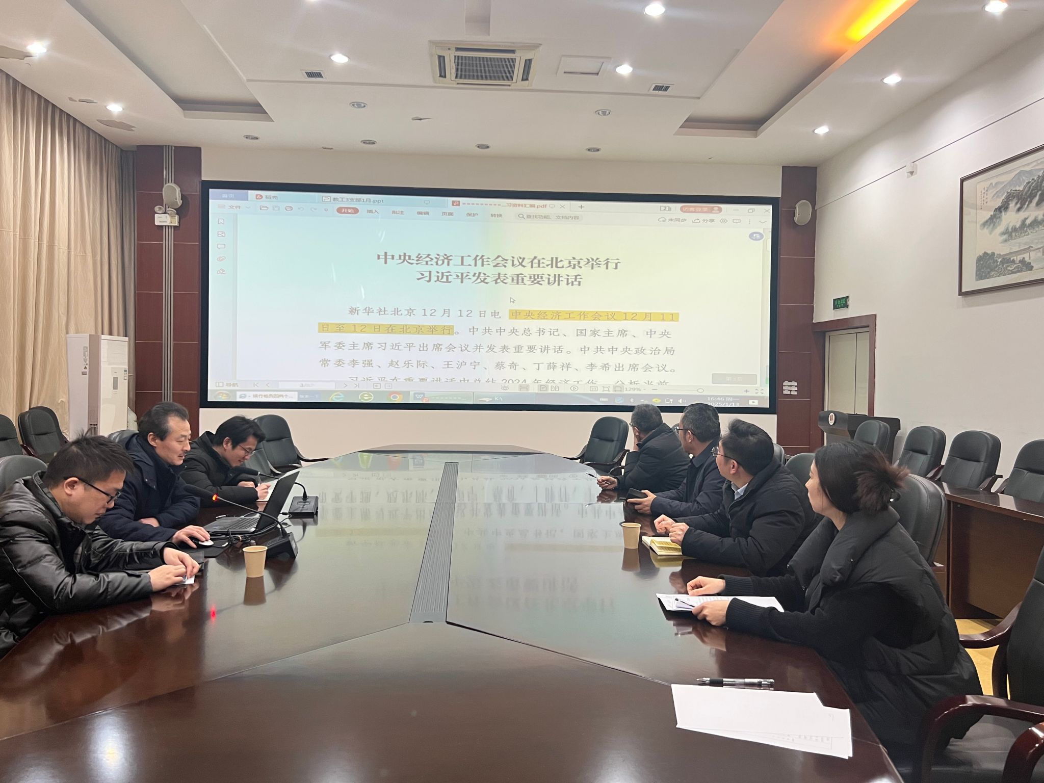 随后,围绕中央经济工作会议的内容,支部党员展开了分享交流。郭丰同志表示:“当前,我国经济恢复仍处在关键阶段,进一步推动经济回升向好需要克服一些困难和挑战。我们要增强忧患意识,有效应对和解决这些问题。我国具有社会主义市场经济的体制优势、超大规模市场的需求优势、产业体系配套完整的供给优势、大量高素质劳动者和企业家的人才优势,经济发展具备强劲的内生动力、韧性、潜力。综合起来看,我国经济回升向好、长期向好的基本趋势没有改变,我们所面临的是前进中的问题、发展中的烦恼,要增强信心和底气。”会议在热烈的氛围中拉下帷幕。