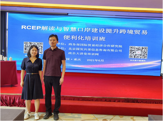 2021年6月7-10日,商务部国际贸易经济合作研究院在重庆举办“RCEP解读与智慧口岸建设提升跨境贸易便利化培训班”,我院国际经济与贸易系教师刘飞宇博士和成肖博士参加培训。