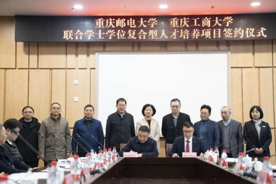 党的二十大提出,促进数字经济和实体经济深度融合,打造具有国际竞争力的数字产业集群,加快发展数字经济的总体部署。我校和重庆邮电大学响应国家战略发展人才之需,贯彻落实市委市府战略部署,发挥两校学科专业特色优势,联合培养既懂数据与信息技术、又懂经济管理,既拥有行业专业能力、又能解决复杂信息工程技术问题的交叉复合型数字经济类人才。该项目由我院与重庆邮电大学计算机科学与技术学院具体实施,将于2024年正式招生,每年各招收约40名高考学生。12月8日,“经济学—数据科学与大数据技术”联合学士学位合作办学项目签约仪式在我校图书馆第五会议室举行。重庆工商大学校长温涛、副校长李敬、重庆邮电大学校长高新波、副校长伍安春,重庆工商大学教务处、太阳集团tyc122cc的领导及教师代表,重庆邮电大学教务处、计算机科学与技术学院的领导及教师代表参加会议,重庆市教育委员会副主任蒋云芳出席会议。