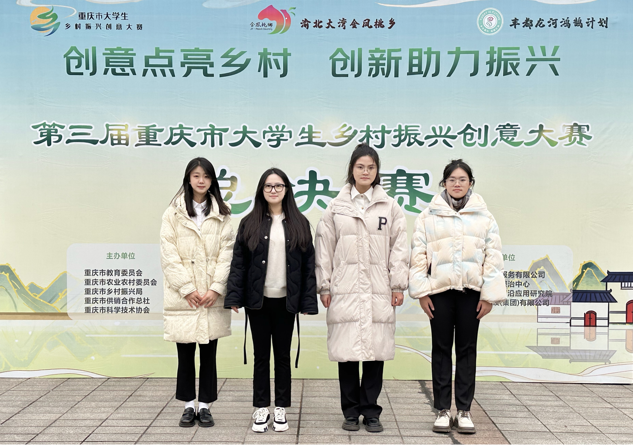 2023年12月17日,由重庆市教育委员会、重庆市农业农村委员会、重庆市乡村振兴局、重庆市供销合作总社和重庆市科学技术协会联合主办的第三届重庆市大学生乡村振兴创意大赛总决赛在重庆文理学院举行,我院曾蓼博士作为指导老师带领太阳集团tyc122cc2021级贸易经济系学生张淋铃等3人参赛,经过激烈角逐获得重庆市一等奖的好成绩。