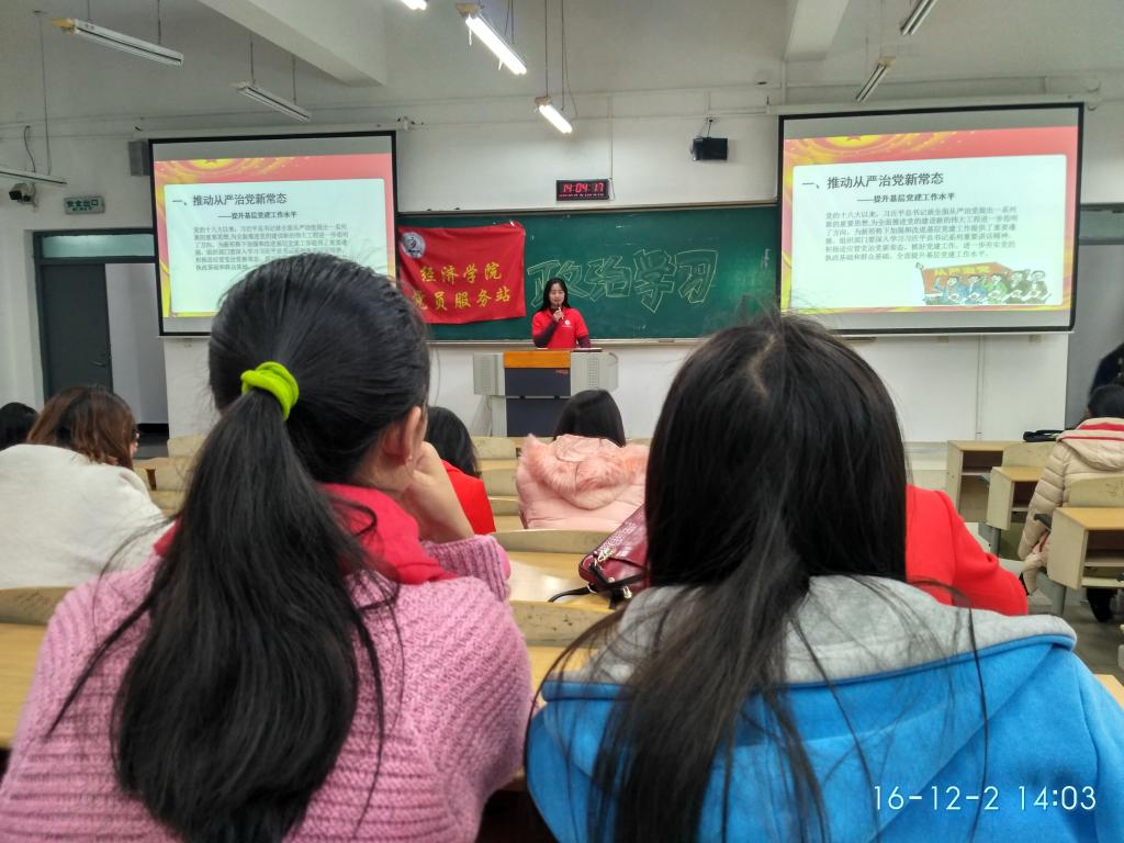 12月4日下午14:00,经济党员服务站在70206教室开展了又一次政治学习,会议由政治学习部部长陈月主持演讲,数名党员干部和站员同学参加了学习。