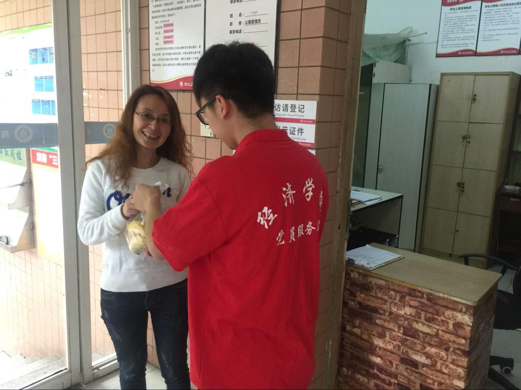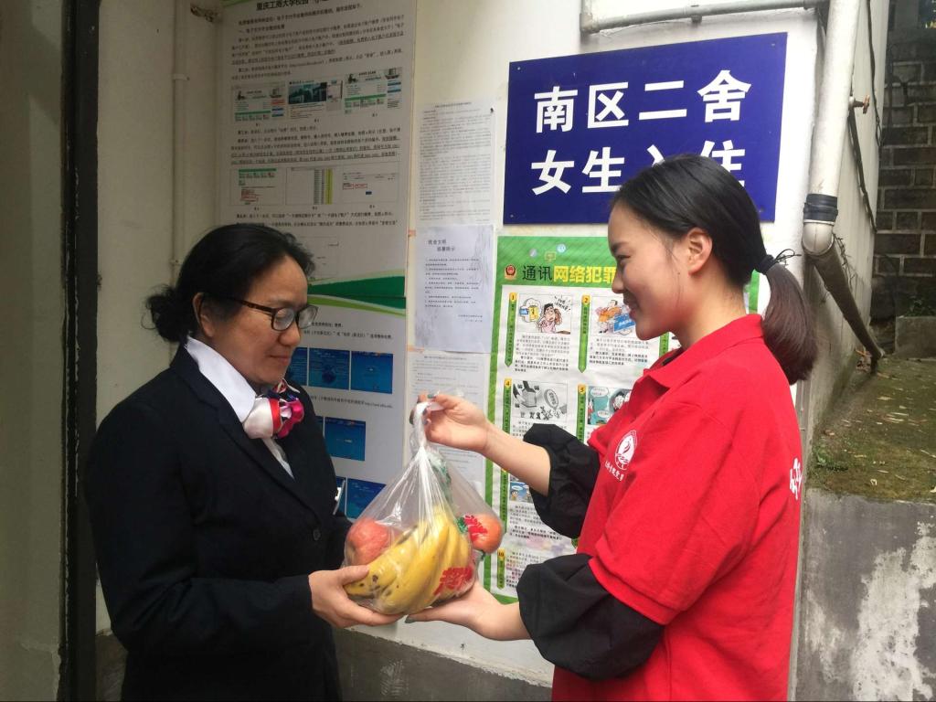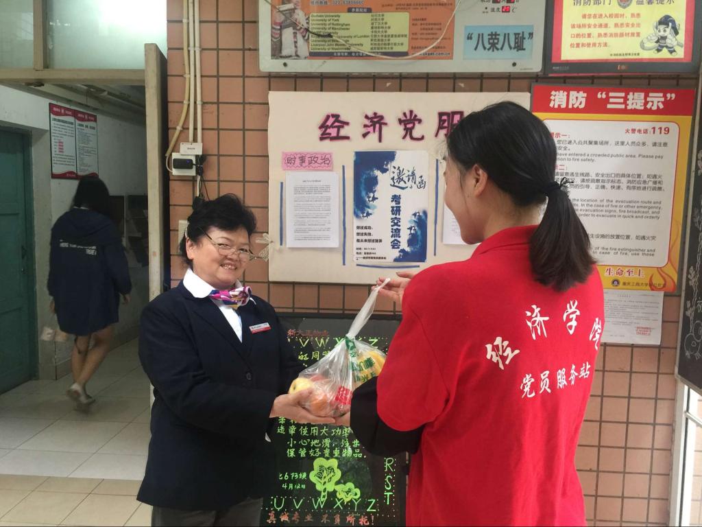 恰逢5.1劳动节到来之际,为答谢宿管阿姨的辛勤付出,重庆工商大学太阳集团tyc122cc党员服务站代表学院全体师生看望宿管阿姨,并为她们送上节日祝福和节日礼物。