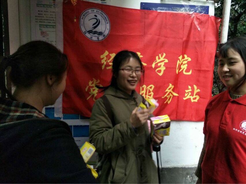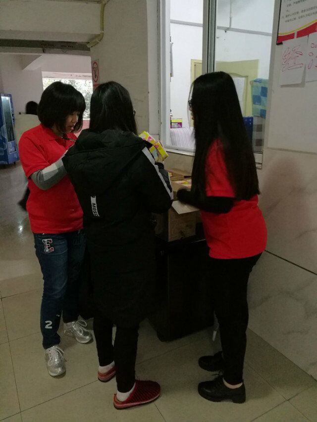 3月7日中午,在北十五和南二楼栋负责分发礼品的娄方亭,罗婉菱,敖倩,徐翠等几位党员服务站的部长早已将礼品准备好,分给路过的同学们。下课回来收到礼物的同学难掩惊喜,纷纷表达了感谢之情,大家热情高涨,活动在欢乐的氛围中顺利进行,并且党员服务站的部长们与同学们和宿管阿姨一起留下了亲密合影。对北六栋女生们的慰问行动也于当天下午4点在北六栋门口进行,由学院党总支于频副书记和郝颖老师亲自到场为同学们进行了礼物发放,到此本次女生节送温暖活动就圆满结束了。