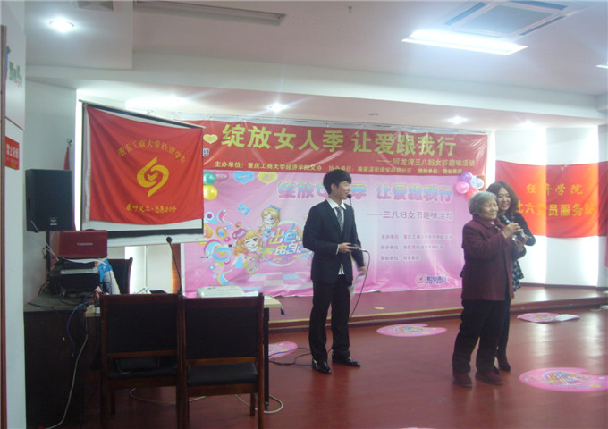 下午2点活动正式开始,首先是海棠溪街道办事处代表进行活动发言,然后志愿者表演了精彩的舞蹈节目,紧接着游戏环节开始展开,数签签、夹乒乓,菜名大竞猜以及生活小常识竞答等。活动过程餐饮店的阿姨们都积极参与进来,一派和谐温暖的气氛。活动最后志愿者演唱了歌曲《感恩的心》,表达了对妇女同胞们的关爱。随后志愿者与党员服务站的同学们分批到街道附近的餐饮店服务,为店里的服务员们帮着送茶、端菜、打扫桌子。