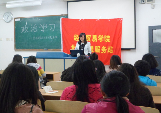 寒冬渐去,春暖花开,和沐的春风拂过校园给同学们带来愉悦的心情。3月29日,北六党员服务站的同学们精神抖擞地参加了在博智楼7209举办的政治学习活动。此次政治学习以“彭丽媛引发的国产风暴潮”为主线而展开,讨论并学习:政治与经济的完美结合。