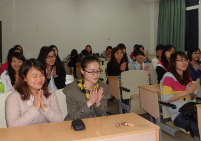 会议首先以当前最热时事新闻:“第一夫人”彭丽媛优雅亮相俄罗斯引瞩目开始,让同学们有了初步的认识和了解。在简短的介绍后,进入本次活动的主题学习——政治与经济的完美结合,主讲人以图文的形式谈到由政治人物的着装细节而引发的国产风暴潮;中式着装风格带来的国产货大热:本土高端服装品牌迎来发展机遇;国产品牌的地位比重越来越重四个主要方面。主讲人热情的讲解带动同学们的讨论,在同学们的相互交流下,会议也步入尾声,有同学对本次学习谈到:“希望中国消费者能多多支持国产,不要陷于国外奢侈品牌的消费。”发言得到了大家的认可,在一片热烈的掌声中活动结束。