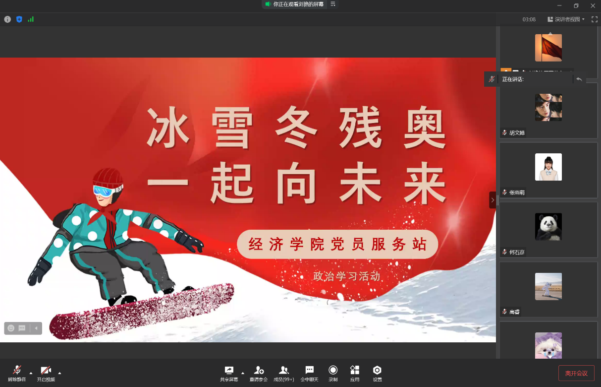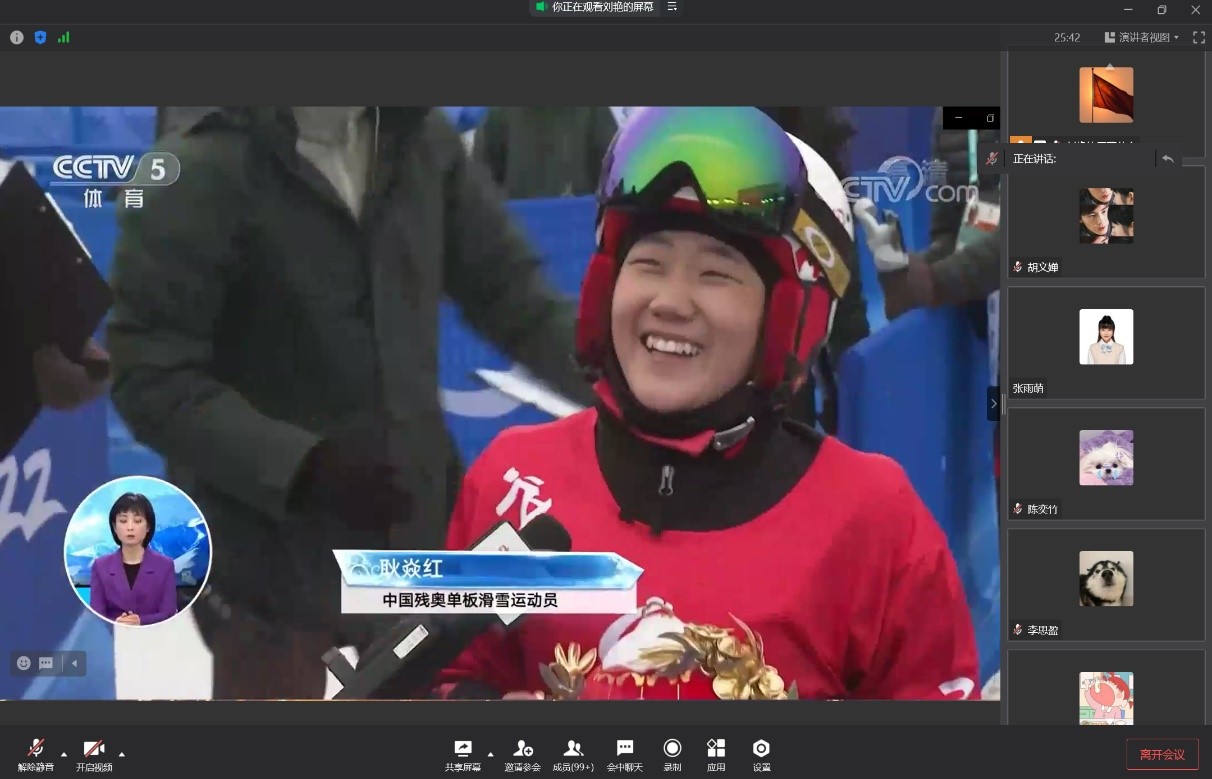 2022年3月13日,北京冬残奥会闭幕式在北京国家体育场“鸟巢”如期举行,历时九天的“冰雪之约”就此划上了圆满的句号。为了弘扬“勇气、毅力、激励、平等”的残奥价值观,使同学们进一步感受到来自残奥运动员身上所具备的拼搏精神和顽强意志,3月18日太阳集团tyc122cc党员服务站通过线上直播的形式举办了“冰雪冬残奥,一起向未来”政治学习活动。本次活动涵盖面广,共有18至21四个年级250位站员参加。活动由20级贸经一班的姚奕主持。