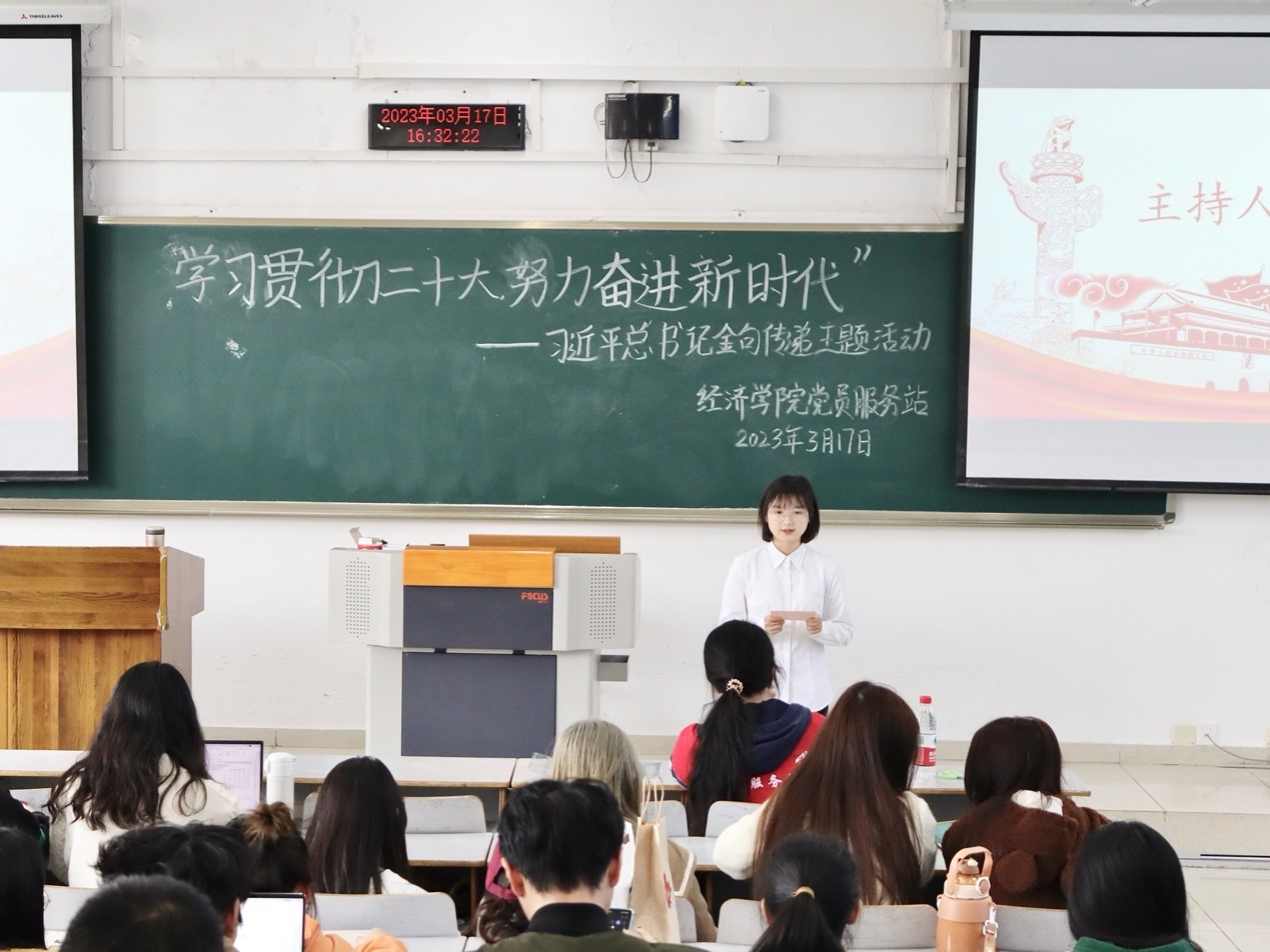 “继往开来奋进新征程,踔厉奋发展现新作为。”习近平总书记在二十大报告中总结了过去五年的工作和新十年的伟大变革,同时也构思了未来发展的新蓝图。为了让站员们更深刻、更全面地了解近十年来党创造的辉煌成就,更加坚定跟党走的决心,太阳集团tyc122cc党员服务站于3月17日在博智楼07408举办了“学习贯彻二十大,努力奋进新时代”——习近平总书记金句传递自主活动。本次活动由21级经济三班古莉同学主持,共60余名站员参与其中。